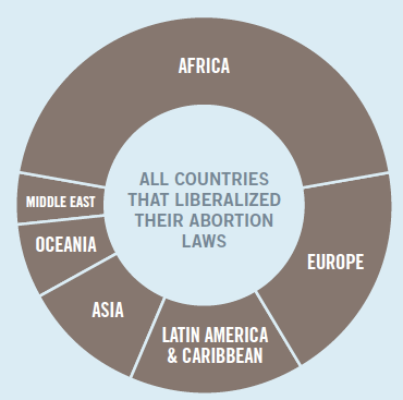 In the following 25 years since the ICPD, we have seen an overwhelming global trend toward the liberalization of abortion laws, with nearly 50 countries worldwide expanding the grounds under which abortion is legal: among them some reformed their laws to allow abortion on request ( Nepal, Guyana, Cambodia and Ireland) and others overturned complete band on abortion reforming their laws to permit it under various circumstances. Half of these countries that liberalized their abortion laws are in Africa.